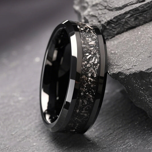 Golden simple 8/6mm inlaid golden foil tungsten steel ring, comfortable to wear, suitable for daily wedding party jewelry gifts