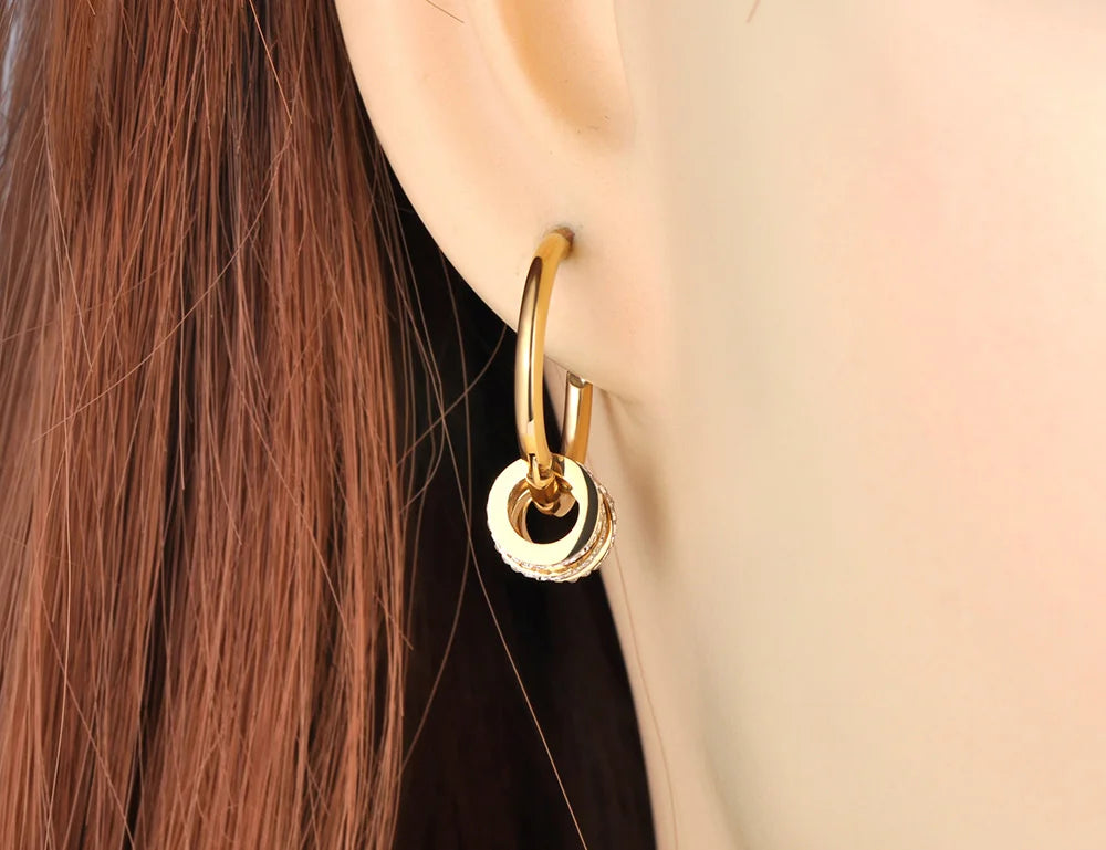 Lokaer Stainless Steel Geometric Circle Hoop Earrings Trendy Green CZ Crystal Bohemia Party Earrings For Women Girls E22020